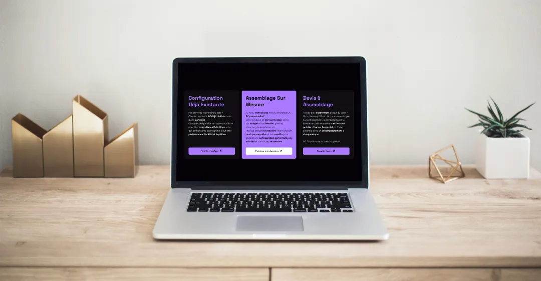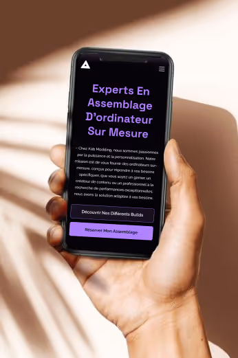 Kab Modding conçoit des PC personnalisés pour les joueurs et passionnés de hardware, avec un vrai accompagnement sur mesure. Mais sur le site actuel, ce positionnement n’était pas toujours évident : objectifs peu clairs, parcours divisé entre devis, réservations et réalisations, et une interface qui diluait un peu le message principal.